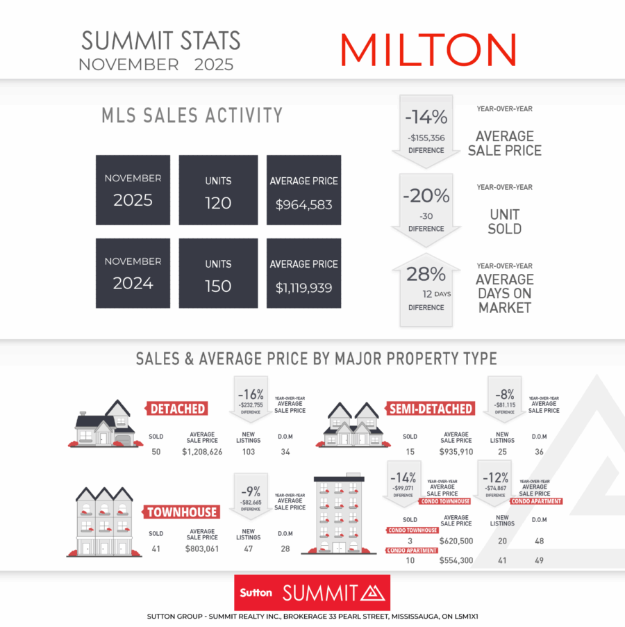 Some markets—especially Milton, Oakville, and parts of Toronto—are showing meaningful corrections, potentially opening doors for long-term opportunities.