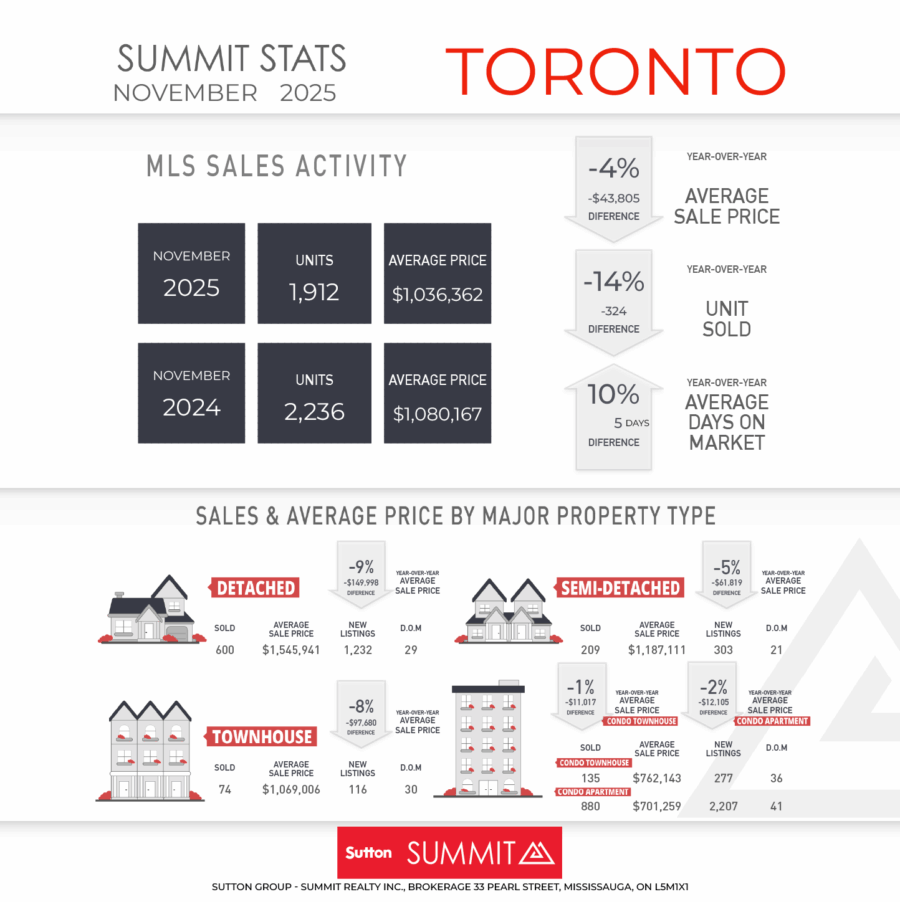 Across the GTA, we’re seeing softer prices, fewer sales, and longer days on market as buyers take more time and inventory sits longer.